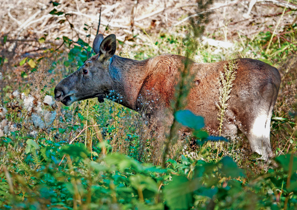 Почти уже выйдя на край очередной вырубки, я обратил внимание на то, что в зарослях кто-то шевелится, приглушённо фыркает, мелькают длинные ноги… Ага, вот и большие уши «выскочили» из зарослей. Следом показалась вытянутая мордочка с характерной горбинкой, которая заканчивалась большим носом, словно натянутым вместе с верхней губой на нижнюю.