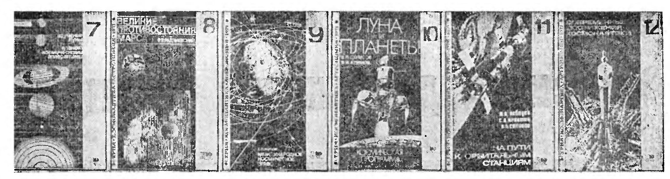 Из брошюр, посвященных астрономической тематике, в прошлом году издано всего две кандидата физико-математических наук В. А. Бронштэна «Планета Венера», и профессора В. В. Радзиевского «Великие противостояния Марса». Конечно, для серии, где на равноправных началах выступают и астрономия, и космонавтика, этого мало.
