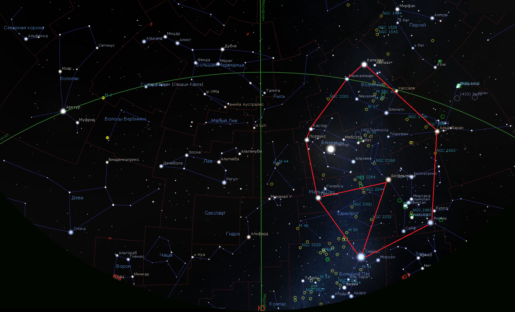 Юпитер будет двигаться попятно по созвездию Близнецов. После январского противостояния у него прекрасная ночная видимость.