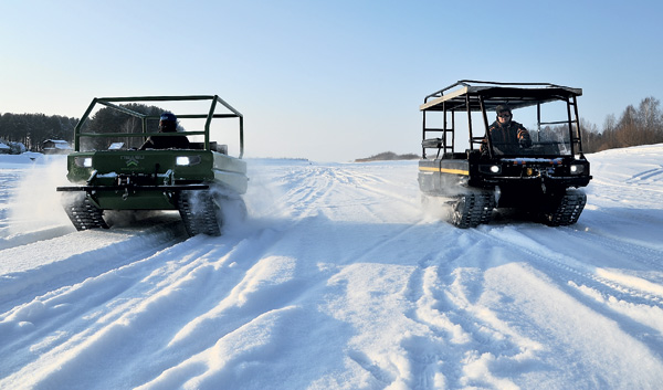 Конечно, такие вездеходы нужны не всем и не везде. А вот для тех, кому они нужны, в Тверской области начали выпуск снегоболотоходов на шинах низкого давления. Для этой машины нет препятствий. А на крайний случай есть лебёдка.