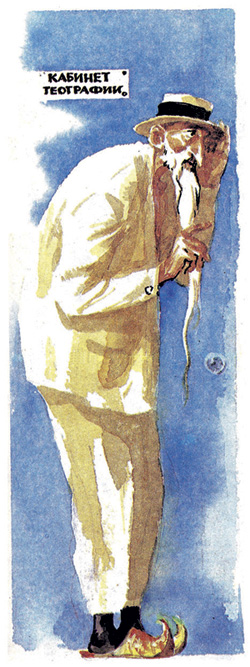 Эта курьёзная история случилась на экзамене по географии с пятиклассником Волькой Костыльковым, героем сказочной повести Лазаря Лагина «Старик Хоттабыч».