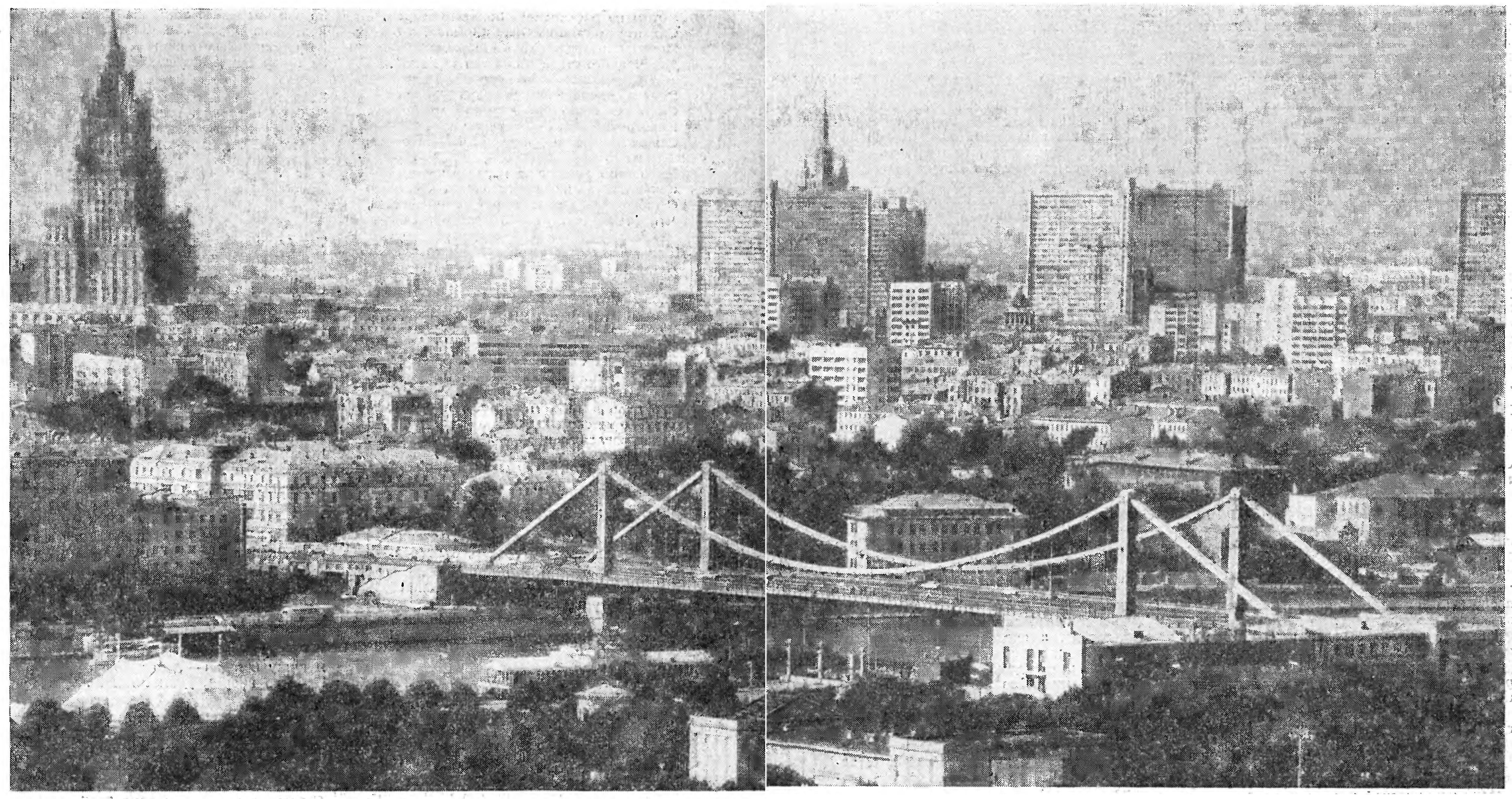 Огромные перспективы дальнейшего развития пашей столицы, как крупнейшего политического, индустриального, научного, и культурного центра страны открывает новый Генеральный план развития Москвы, разработанный московскими организациями, и одобренный Центральным Комитетом партии, и Советским правительством. Положения Генплана проникнуты заботой о человеке. Ни одна из столиц капиталистического мира не имеет, да, и не может иметь такого плана, реализация которого позволит обеспечить всем жителям города самый высокий уровень жизни.