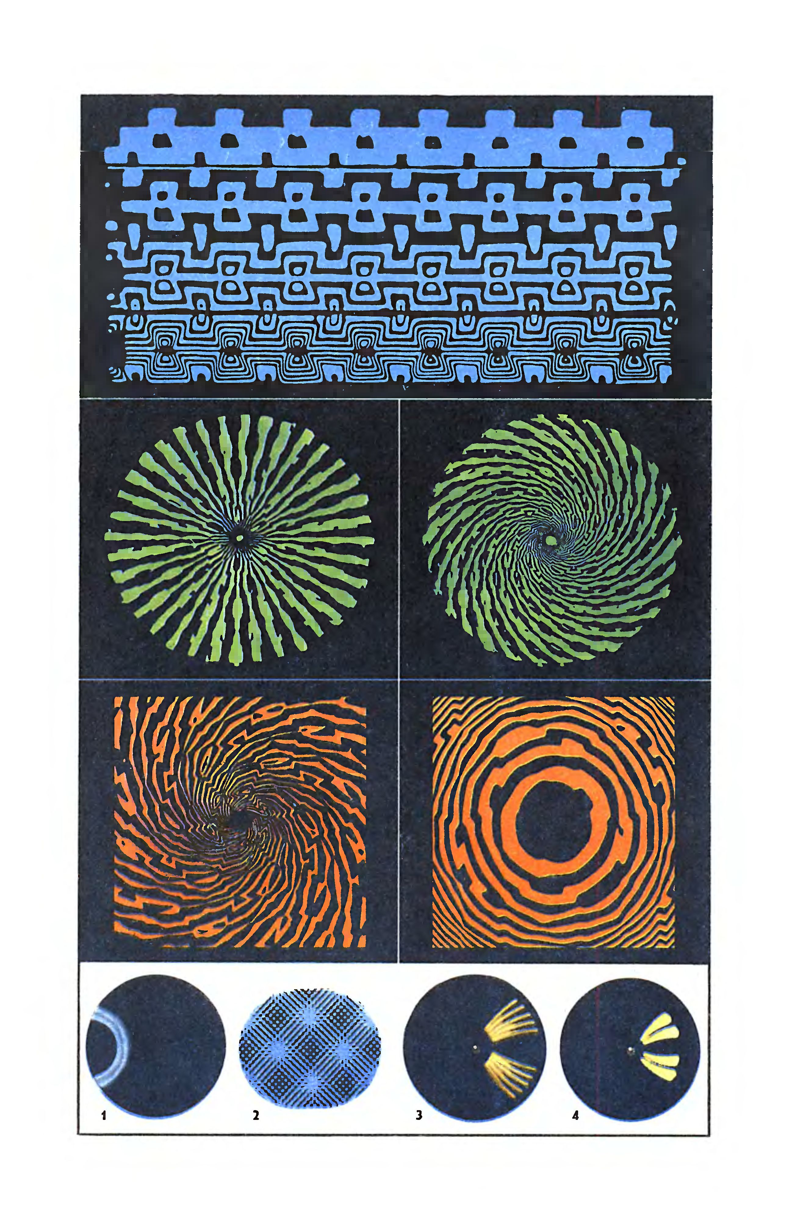 Детальное исследование форм фосфенов, вызванных электрическим раздражением, проведено Максом Кнолем с сотрудниками из Высшей технической школы в Мюнхене *. К вискам человека прикладывали металлические электроды, которые для лучшего контакта обертывались фетром, пропитанным солевым раствором. Электроды присоединялись к низковольтному генератору прямоугольных импульсов (напряжение один вольт, сила тока порядка миллиампера). Ученый обнаружил, что с точки зрения появления фосфенов наибольшей эффективностью обладают импульсы, следующие с частотой, близкой к частоте биотоков (от пяти до сорока герц). Испытанию подвергалось более тысячи человек. Все они после адаптации к темноте видели мерцающий свет, а около половины их видели геометрические фигуры, форма которых зависела от частоты импульса.