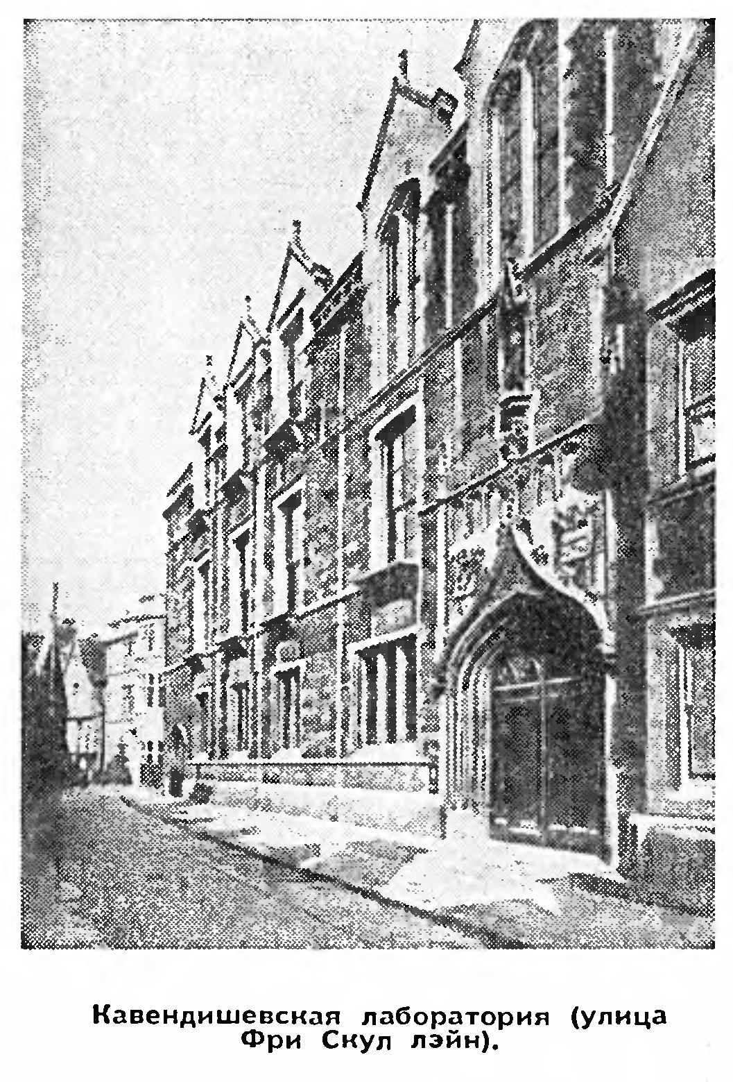 - тут в Кавендишевской лаборатории на старинной улочке Фри Скуллэйн Дж. Дж. Томсон в 1897 году открыл электрон.