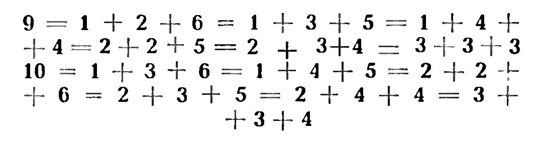 Галилей нашел, что десять осуществляется двадцатью семью способами, а девять - двадцатью пятью: