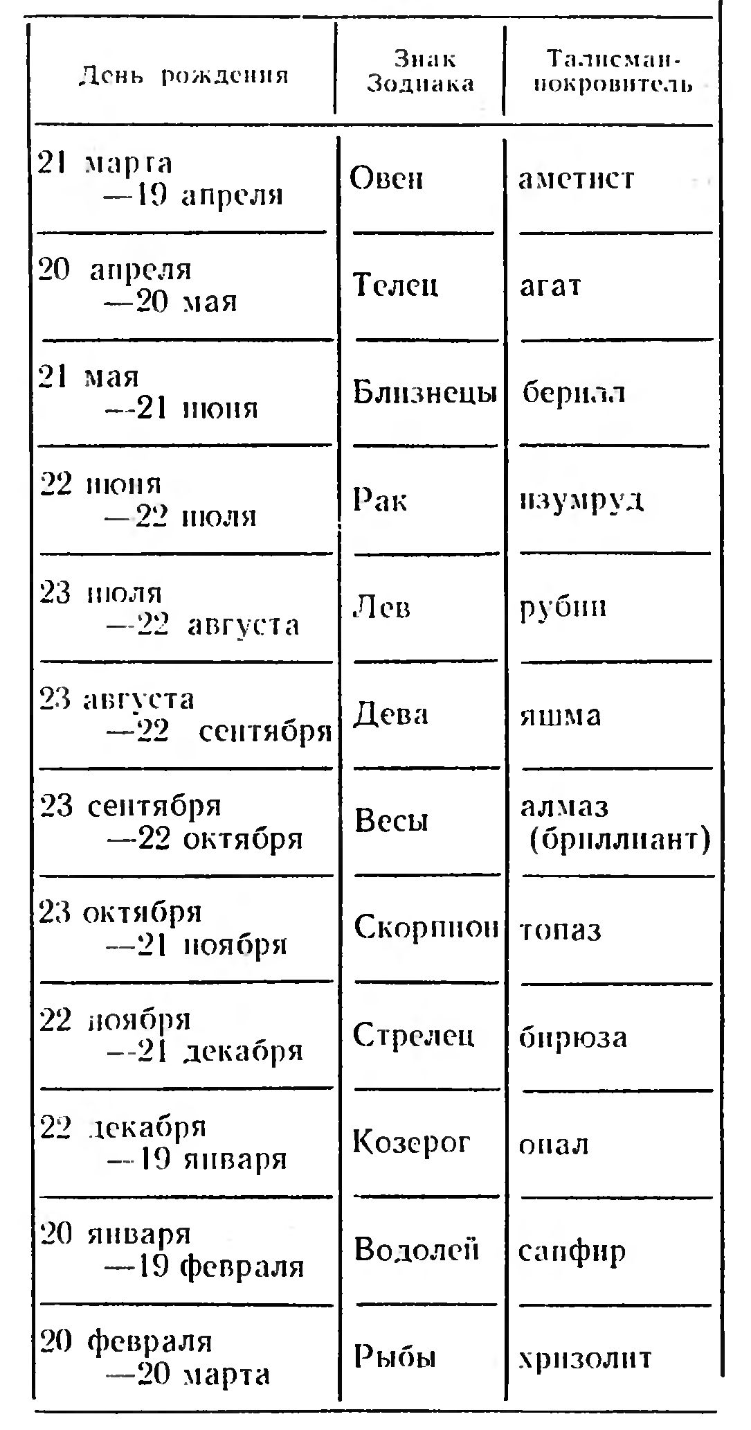 День рождения Знак Зодиака Талисманной покровитель
