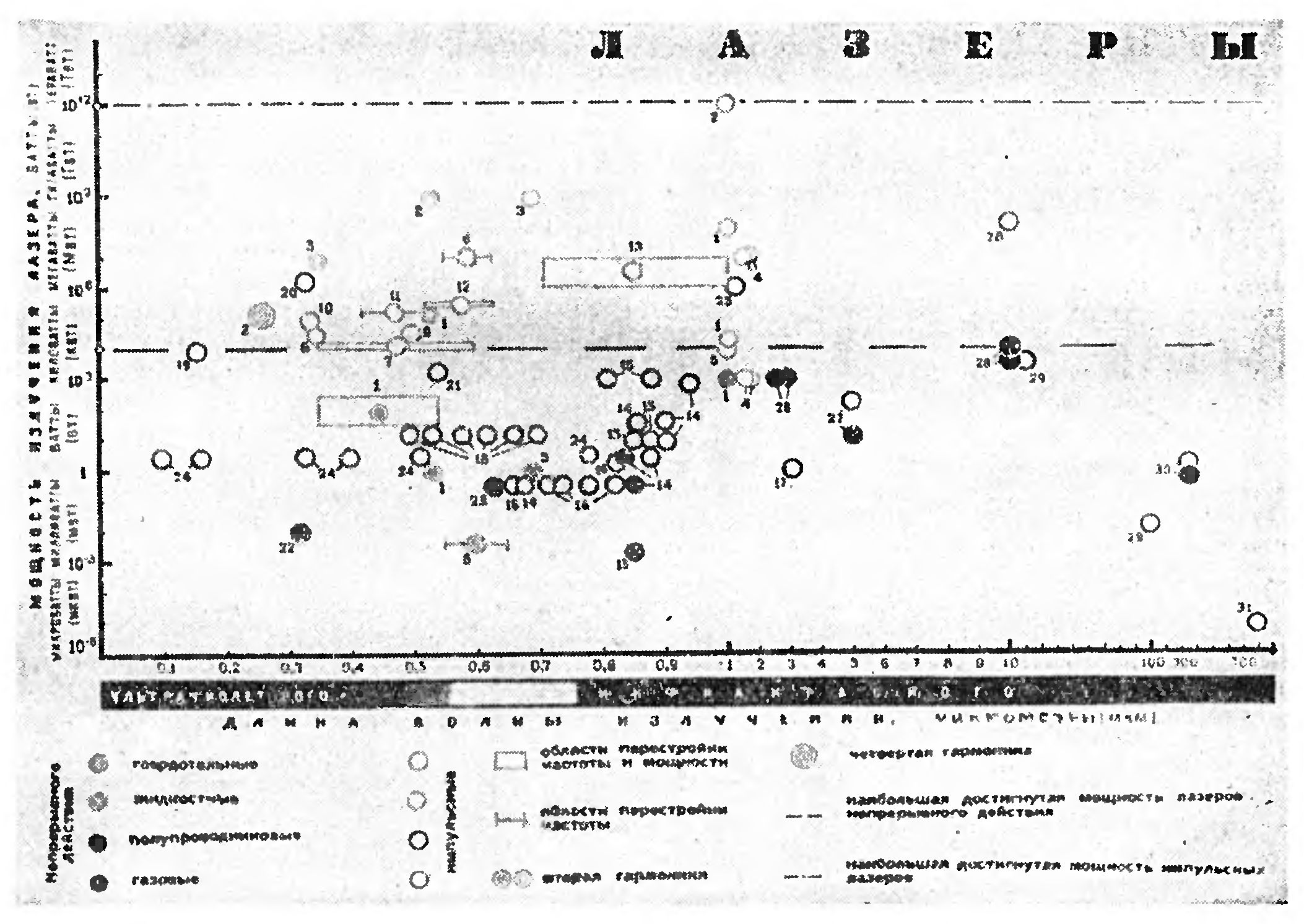 В предыдущем номере журнала «Наука, и жизнь» обширная семья лазеров была систематизирована по длинам волн, и мощностям излучения в импульсном, и непрерывном режимах генерации (снимок вверху). Обилие различных типов лазеров определяет широту сферы их применения. Трудно даже перечислить все области, где лазеры не только с успехом могут заменить старые технические средства, но, и создать принципиально новые возможности.