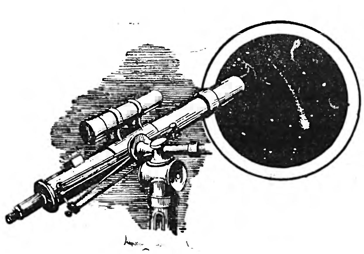МНОГИЕ из нас не раз любовались «падающими звездами», то есть метеорами, влетающими в земную атмосферу и сгорающими в ней. Немало и таких людей, которым удавалось наблюдать целые «звездные дожди» Последние бывают видимы 3-4 раза в столетие. Однако расчеты показывают, что в действительности они происходят непрерывно, только мы их не обнаруживаем ввиду слабости нашего зрения. Работая с телескопом, астроном нередко отмечает проносящиеся через поле наблюдения слабенькие метеоры. Если бы этот прибор, который выделяет для обозрения лишь очень маленький участок неба, позволял видеть вширь столько же, сколько видит невооруженный глаз, то и метеоров регистрировалось бы во много раз больше. Это и был бы настоящий «звездный дождь»