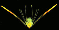 американская исследовательница Элизабет Бальзер недавно обнаружила удивительный факт, касающийся развития колючей офиуры. У этого вида из яйца вылупляется планктонная личинка офиоплутеус, у нее маленькое коническое тельце и восемь рук - тонких известковых палочек, покрытых нежной кожицей. В процессе развития две руки становятся чрезвычайно длинными. Постепенно на тельце, в месте соединения рук, образуется маленькая офиурка, которая наконец отрывается от тела личинки, оседает на дно и начинает взрослую, донную жизнь, а оставшаяся часть личинки погибает. Так происходит у офиур большинства видов. Но Бальзер обнаружила, что иногда оставшаяся после отрыва молодой офиурки часть личинки не погибает, а восстанавливает утраченные органы и формирует вторую молодую офиурку, а бывает, и третью. В результате каждая личинка дает не одну, а двух-трех молодых офиур, генетически идентичных, как однояйцевые близнецы. Иными словами, офиура умеет клонировать саму себя! Возможно, столь необычный способ "личиночного размножения" и служит одной из причин широкого распространения и высокой численности колючей офиуры.
