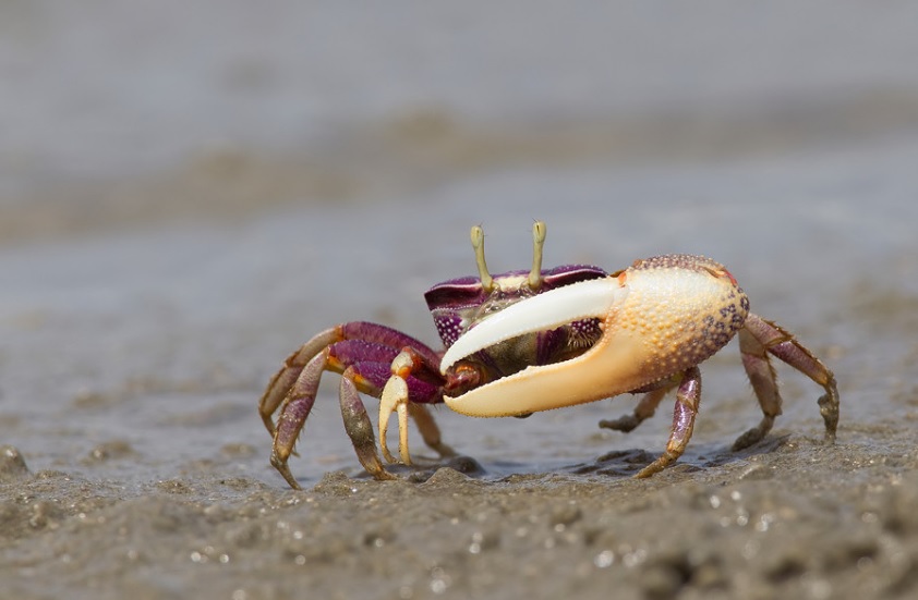 Манящего краба узнает любой – одна из клешней у них вырастает очень большой, и тому же она довольно часто ярко окрашена. Она есть только у самцов – с её помощью они приманивают самок. Самец особым образом машет клешнёй, стоя у своей норы, а самка, видя его позывные издалека, решает, стоит ли с ним связываться: те, кто машет чаще и дольше, имеют большие шансы на успех. Однако размахивание клешнёй – лишь первый акт ухаживания. Когда самка подходит ближе, самец заходит к себе в нору и начинает оттуда вибрировать, и этот акустический сигнал несёт для самки дополнительную информацию о том, каков из себя этот брачный претендент. Исследователи из Университета Нагасаки и Университета Рюкю проанализировали сигналы самцов и выяснили, что частота вибрационных сигналов, а также длительность и промежутки между ними зависят от размера краба, от того, насколько он вынослив и здоров – в целом, чем энергичнее вибрирует самец из норы, тем больше вероятность, что самка последует за ним на брачное, так сказать, ложе.