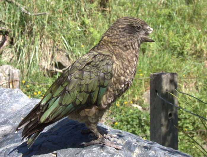 В одном из заповедников Новой Зеландии живёт попугай кеа по имени Брюс. Много лет назад его нашли в горах Южного острова – молодая птица потеряла надклювье. Однако попугай не погиб, а приспособился жить со своим увечьем. В заповеднике его познакомили с другими кеа, которые обычно живут группами. В группах кеа, как у большинства социальных животных, есть иерархическая структура, на вершине которой находится лидер-альфа. Лидерство зарабатывается в стычках, в которых кеа энергично орудуют клювом – он у них крупный, с загнутым вниз острым кончиком на надклювье. У Брюса надклювья нет, но он изобрёл другой стиль борьбы – он начал использовать уцелевшее подклювье как копьё. Вытянув шею, он бежит или напрыгивает на другого попугая, целясь тому в голову, шею, ноги и крылья. Притом что обычно подклювье-копьё цели не достигает, такая атака устрашает попугаев, и они отступают перед Брюсом. Перенять его манеру они не могут: клювы-то у них у всех нормальные, и атаку «копьём» им не изобразить. Брюс пользуется всеобщим уважением: другие попугаи помогают ему чистить перья и убирать остатки пищи из клюва – точнее, из того, что от него осталось. Социальные успехи Брюса описаны в недавней статье в Current Biology. Известны другие примеры, когда увечный индивидуум поднимался на вершину социальной лестницы – такое наблюдали, например, у шимпанзе и японских макак. Но в тех случаях лидерство достигалось в альянсе с другой особью. Брюс же стал альфой среди других кеа без посторонней помощи.