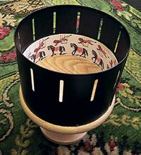 «Этерофон состоял из лампового генератора с двумя колебательными контурами, предварительно настроенными на одну частоту. Один из контуров был закрытый (его резонансная частота постоянна). Другой?— открытый (одна из обкладок конденсатора выполнена в виде антенны). При приближении к антенне человека ёмкость конденсатора менялась и соответственно менялась частота колебаний контура. Из-за возникшей разницы в частотах на выходе устройства появлялся звуковой сигнал» (фамилия изобретателя).