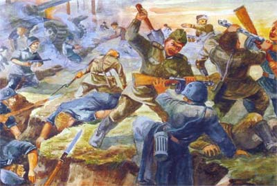 Вот так, от рисунка к рисунку, прослеживается боевой путь рядового бойца-пехотинца Константина Глушко: Эстония, Латвия, Польша, Данциг, Восточная Пруссия. Вот эпизод боя в городе Найденбурге, а вот уже этот город взят, а вот идет бой в деревне Нойкирхехе в Восточной Пруссии, переправа через Вислу, взят Таненбург и наконец – 9 мая 1945 года, Победа! Рисунок сделан, как свидетельствует подпись в местечке Дербене под Берлином. На нем радостные объятия победителей, последние выстрелы, уже не по врагу, а в воздух, салютом всем, кто не уцелел на этом длинном и кровавом пути.