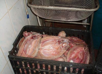 5. Сбор удаленной с рыбы чёрной плёнки в сетку–фильтр.