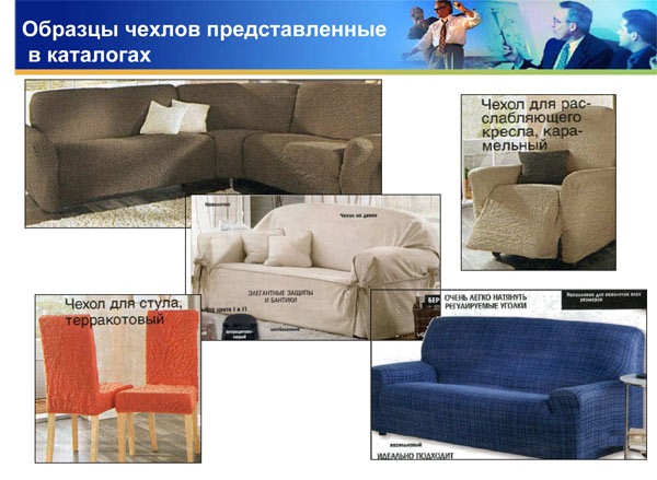 Яркие чехлы для кресел станут отличным цветовым акцентом. А нейтральных тонов - помогут объединить предметы из разных коллекций для этого на диван и соседние кресла просто шьются чехлы в одном стиле и с аналогичными декоративными элементами.