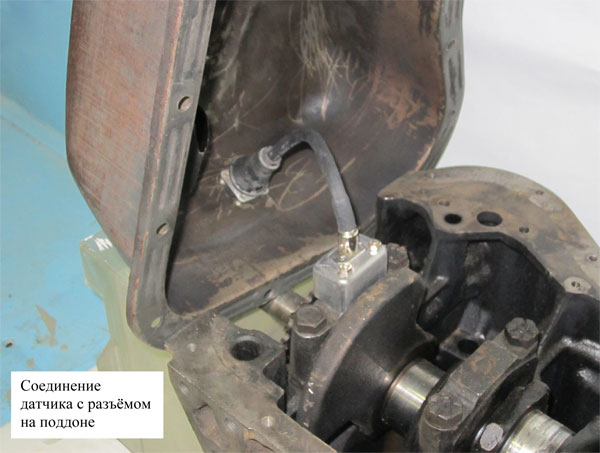 3. Соединить электрические разъёмы блока управления и датчика (Разъём находится на поддоне двигателя).