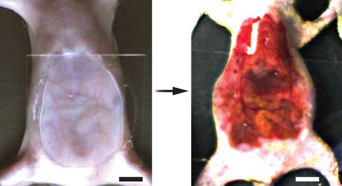 Пищевой краситель делает кожу прозрачной, помогая увидеть внутренние органы.