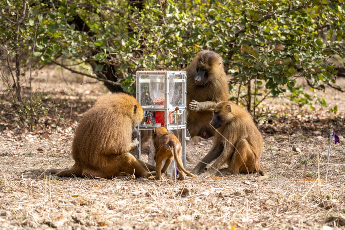 Гвинейские павианы вокруг экспериментального ящика с едой. (Фото: German Primate Center)