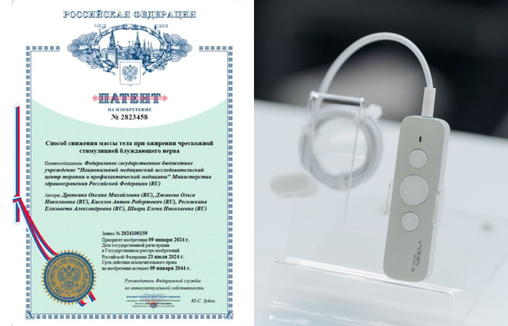 Разработка устройства заняла около трёх лет. Патент на способ снижения массы тела с помощью стимуляции блуждающего нерва описан после проведённого исследования в ФГБУ НМИЦ терапии и профилактической медицины Минздрава России. («Редукция массы тела и динамика рациона у пациентов с ожирением на фоне низкочастотной чрескожной стимуляции блуждающего нерва: результаты рандомизированного исследования с плацебо контролем» Кардиоваскулярная терапия и профилактика. 2024; 23 (10): 4142)