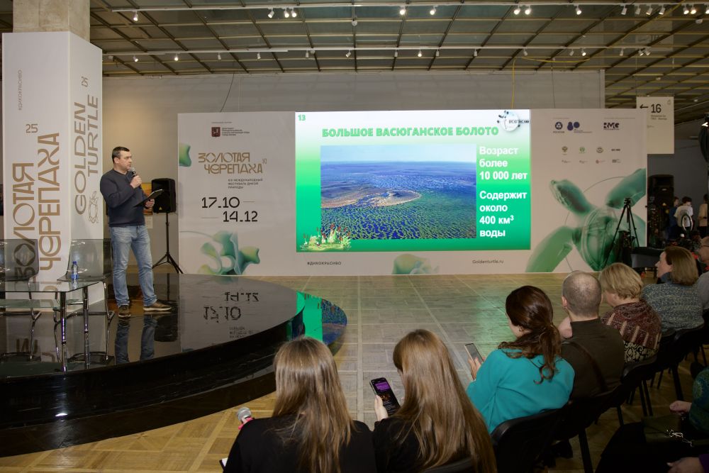 Феномен мирового масштаба – Большое Васюганское болото – раскрыл гостям фестиваля заместитель директора по научной работе и государственному мониторингу заповедника «Васюганский» Михаил Здвижков. Заповедник находится в Западной Сибири в двух регионах – Томской и Новосибирской областях, тогда как Большое Васюганское болото – крупнейшее по площади в мире торфяное болото – расположено на территории 3 регионов: Томской, Новосибирской, Омской областей. Возраст этого уникального природного объекта, вмещающего около 400 км3 воды, составляет около 10 тысяч лет. С 2007 года Большое Васюганское болото включено в предварительный список объектов Всемирного наследия ЮНЕСКО, ведётся работа по включению объекта в основной перечень.